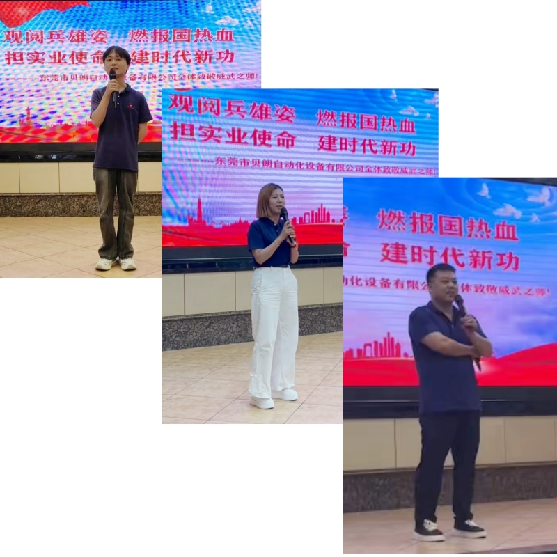閱兵結束,多位同事踴躍發言紛紛上臺分享了觀后感, 共同的聲音是:何其有幸,生于華夏。真理只在大炮的射程之內,作為貝朗自動化的一員,我們或許不在閱兵場上,但我們同樣站在國家發展的重要戰場上——制造業的戰場。我們生產的每一臺線材成型機,都是中國工業基礎的一部分;我們突破的每一項技術,都是在為“中國制造”向“中國智造”轉型升級貢獻實實在在的力量。