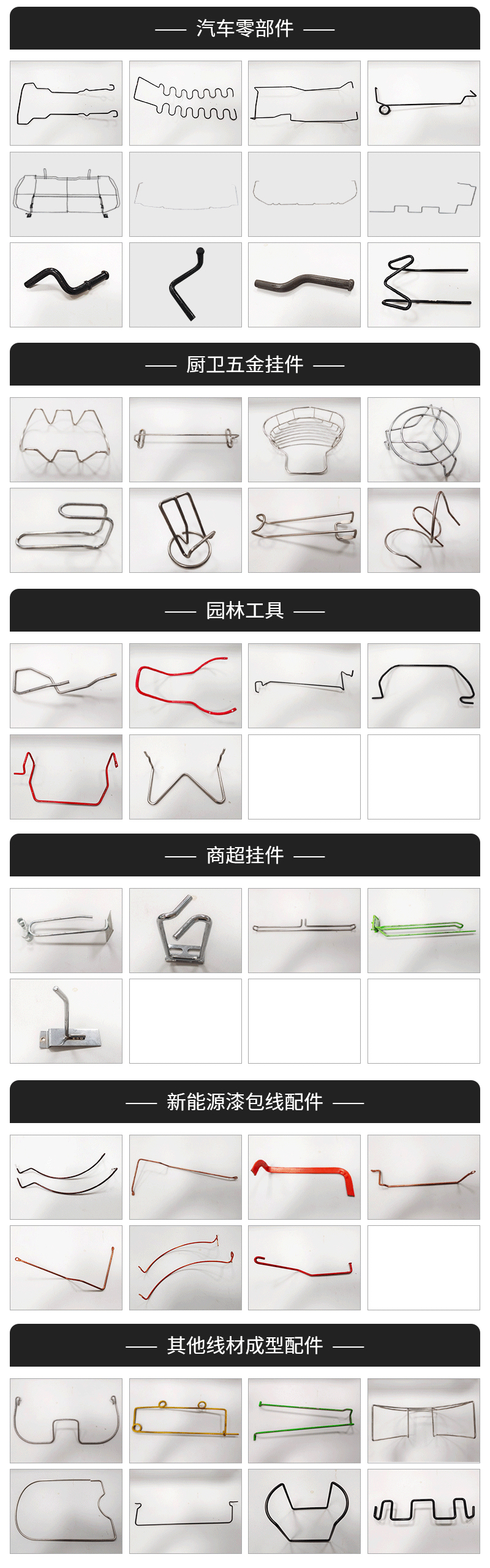 墩頭折彎組合機BL-3D-51200主要應用于汽車零部件行業(yè),其中包含汽車座椅鋼絲、汽車座椅配件成型;寵物籠配件;衛(wèi)廚五金配件;園林工具配件、電子產(chǎn)品成型、玩具配件成型、電器配件成型、運動器材配件成型、 文具配件成型、儀器配件成型、儀表配件成型、發(fā)飾配件成型、廚衛(wèi)掛件配件成型、 工藝品成型、超市貨架配件成型等所需的各類高精密金屬線材成型配件領域。